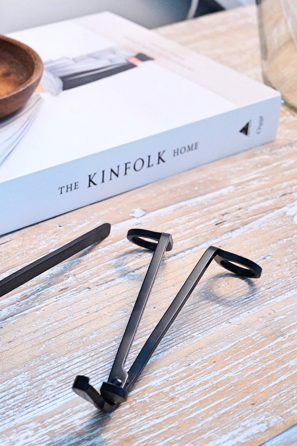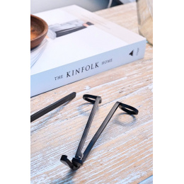 Speciální nůžky pro pohodlné zastřihnutí knotu přibližně v délce 5 mm před každým zapálením svíčky. Udržování knotu zastřižením zajistí stabilní plamen a rovnoměrné hoření svíčky, zabrání kouření a znečištění vosku ohořelými zbytky z knotu. Mosazné nůžky v matném černém provedení.