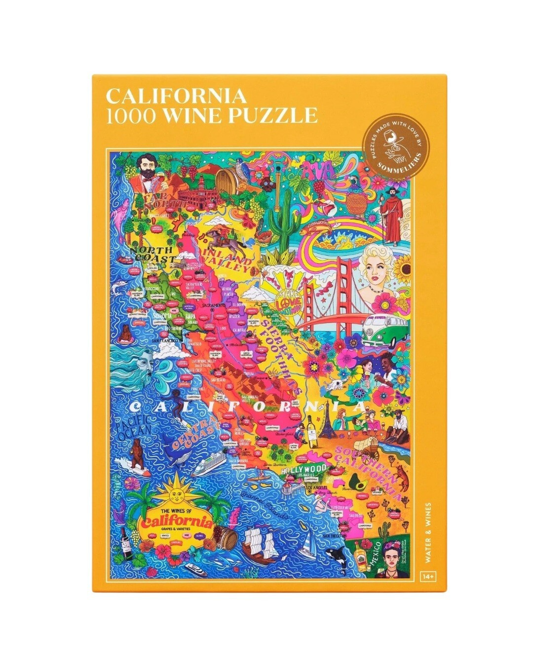 Puzzle mit dem Thema kalifornische Weinregionen und den für Kalifornien typischen Rebsorten. Die Box enthält außerdem Profile der einzelnen Sorten, ihre charakteristischen Aromen und Geschmacksrichtungen sowie zahlreiche Tipps zur Kombination mit Speisen! Die Illustrationen wurden zunächst von Hand gezeichnet und dann mit Hilfe der besten Sommeliers der Welt sorgfältig überprüft.